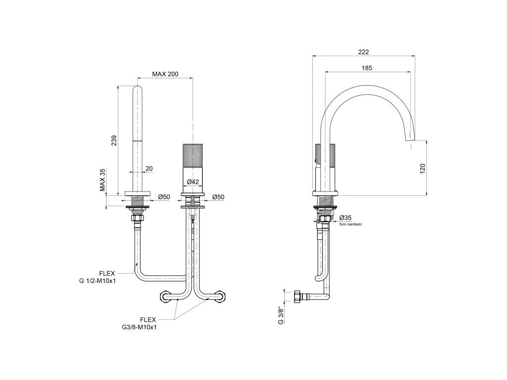 Sapho ULTRATAP dvouprvková stojánková umyvadlová baterie, černá mat/zlato mat UT019TBG