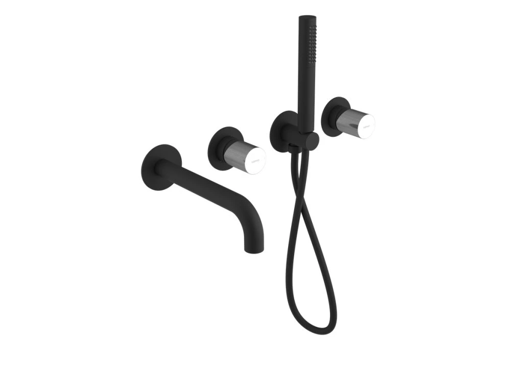 Sapho ULTRATAP podomítková vanová baterie s hubicí a ruční sprchou, 2 výstupy, černá mat/chrom UT093TBC