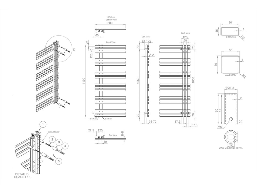 - Topná tyč a připojovací ventily nejsou součástí balení