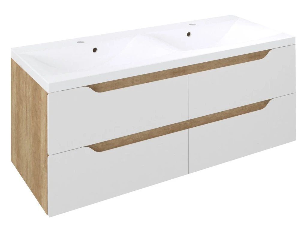 Sapho WAVE dvojumyvadlová skříňka 119,7x50x47,8cm, bílá/dub alabama WA120-3022