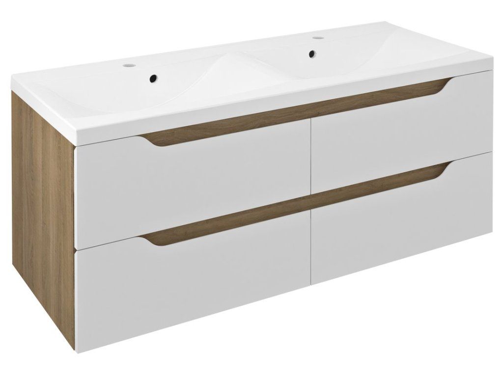 Sapho WAVE dvojumyvadlová skříňka 119,7x50x47,8cm, bílá/dub cuneo WA120-3025
