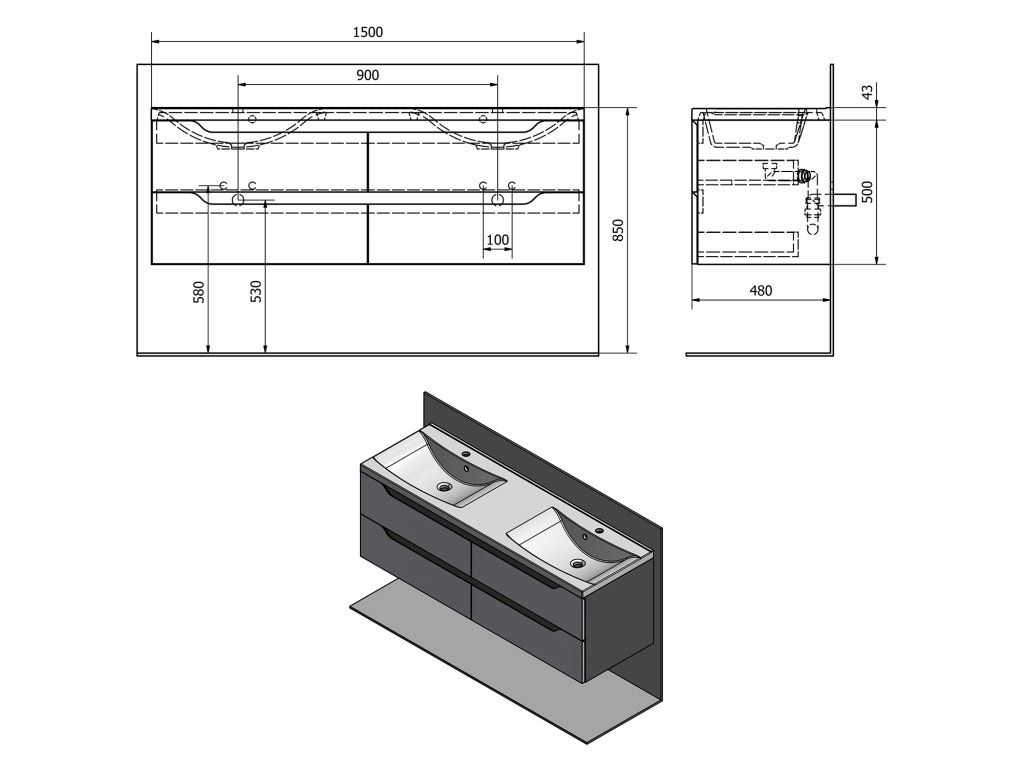 Sapho WAVE dvojumyvadlová skříňka 149,7x50x47,8cm, bílá/mali wenge WA150-3021