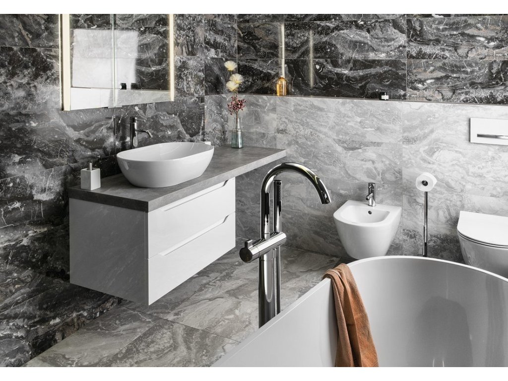 WAVE nabízíme v šesti variantách šířek umyvadlových skříněk, včetně dvojumyvadlových. Na skříňky lze použít i desky z Rockstonu, z kompozitu (HPL laminát) nebo AVICE desku a vybrat si ze široké nabídky umyvadel na postavení. V nabídce jsou i doplňkové vysoké skříňky, které společně s umyvadlovou skříňkou tvoří harmonický celek.