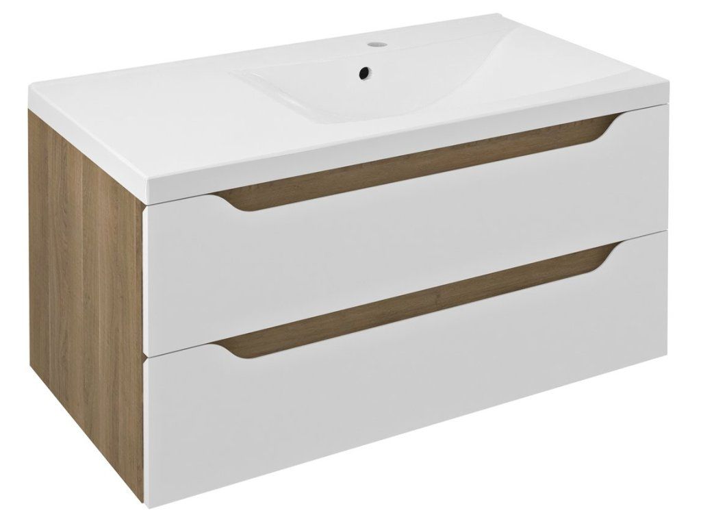 Sapho WAVE umyvadlová skříňka 89,7x45x47,8cm, pravá, bílá/dub cuneo WA093-3025