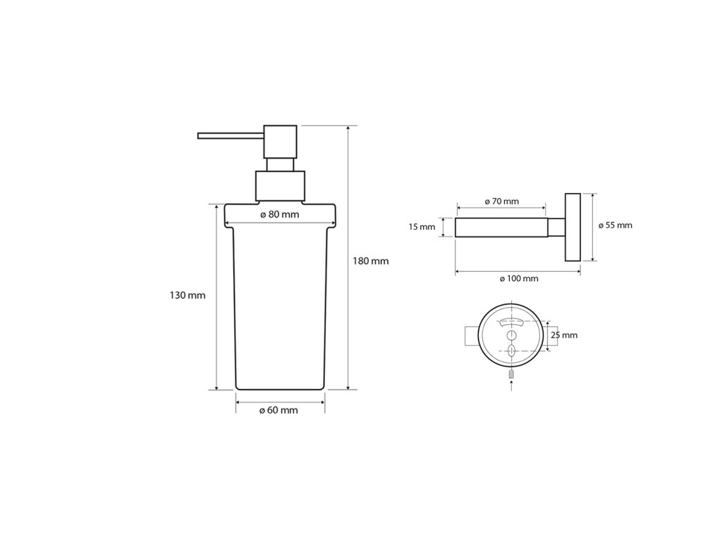 Sapho X-ROUND BLACK dávkovač mýdla 230ml, mléčné sklo, černá mat XR101B