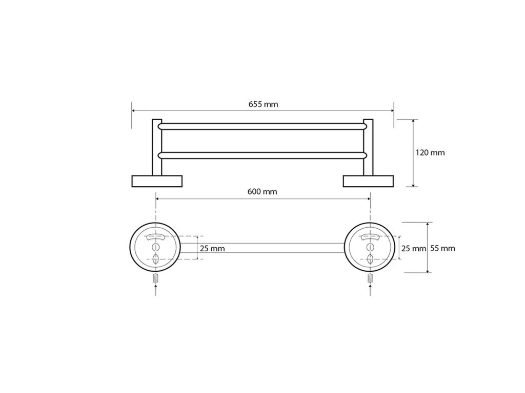 Sapho X-ROUND BLACK dvojitý držák ručníků 600mm, černá mat XR401B