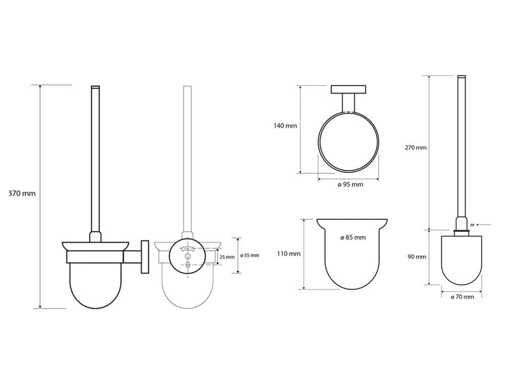 Sapho X-ROUND BLACK WC štětka závěsná, mléčné sklo, černá mat XR303B