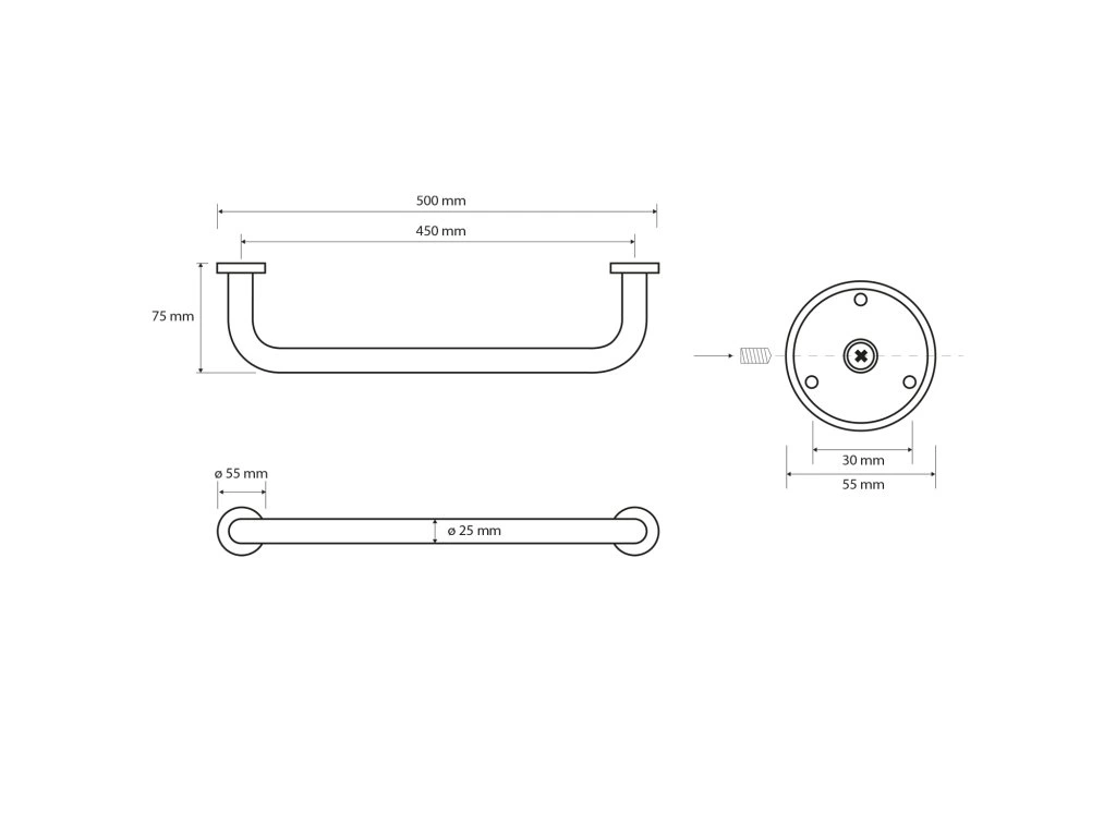 Sapho X-ROUND E madlo pevné 450mm, chrom XR500