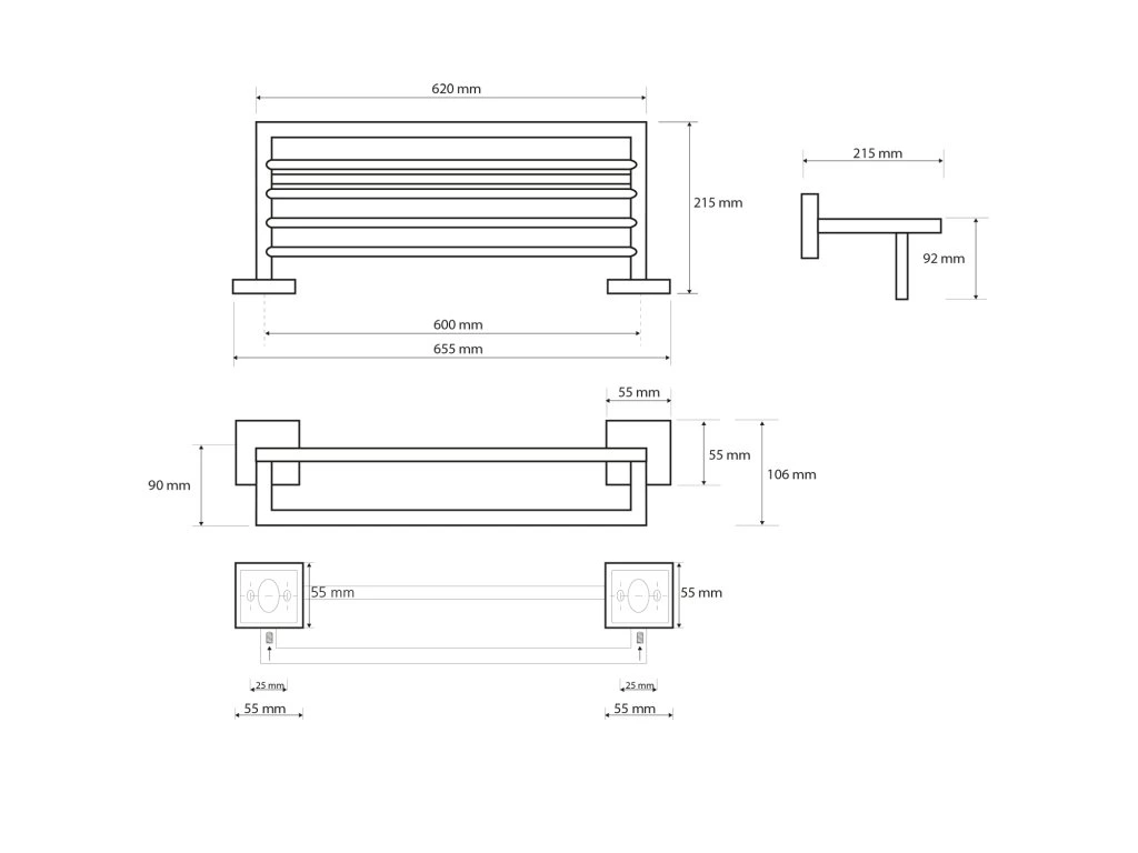 Sapho X-SQUARE polička na ručníky s hrazdou 650x110x215mm, chrom XQ601