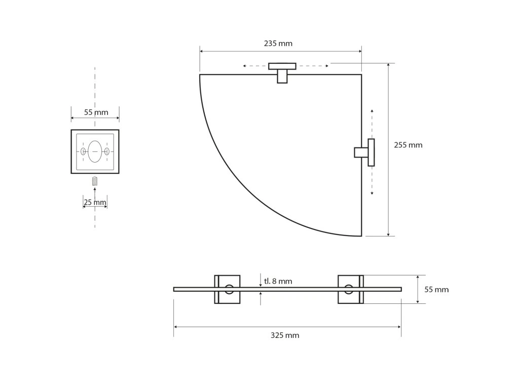 Sapho X-SQUARE polička skleněná rohová 250x55x250mm, mléčné sklo, chrom XQ604