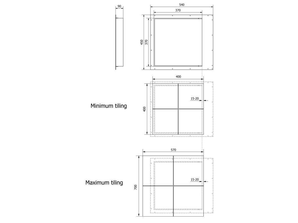 Balení obsahuje: dvířka v rámu, instalační prvky, ukončovací PVC lišta 8 a 10 mm.