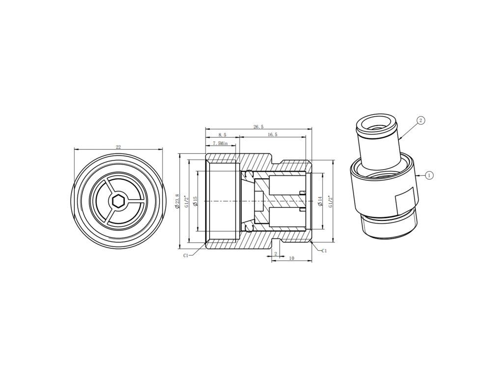 Sapho Zpětná klapka, 1/2"x1/2", chrom ADA11