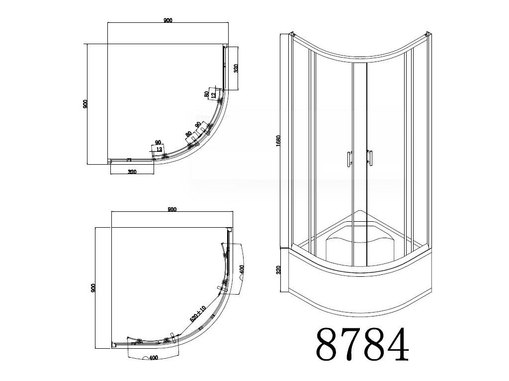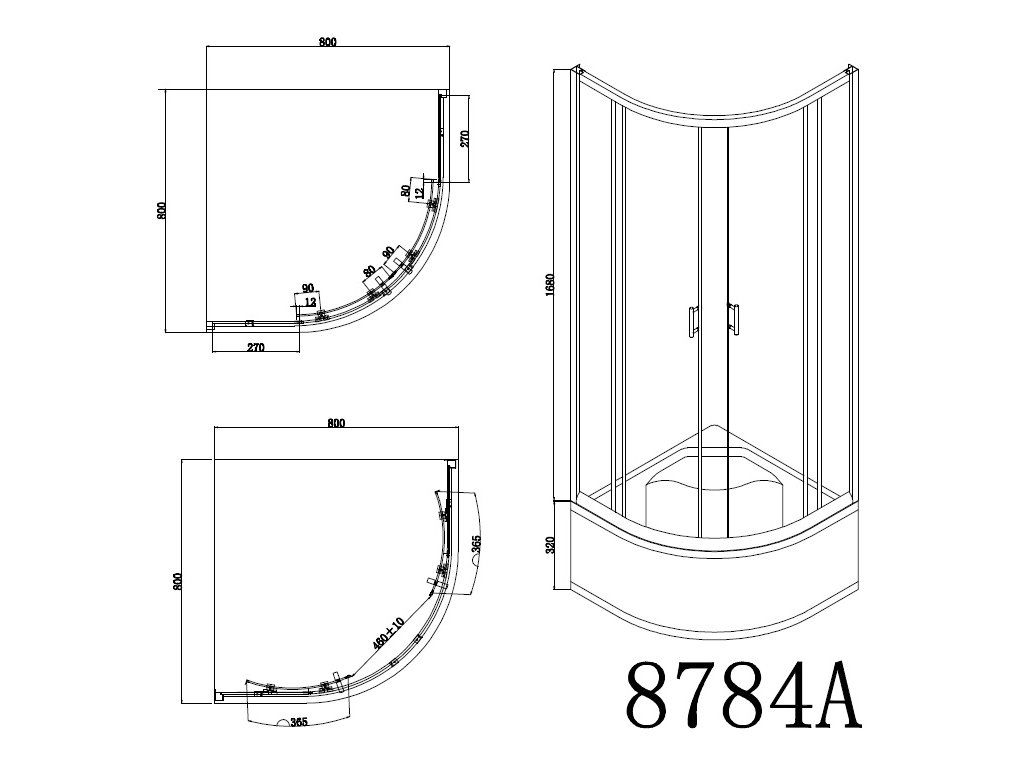 - čtvrtkruhový sprchový kout s vaničkou