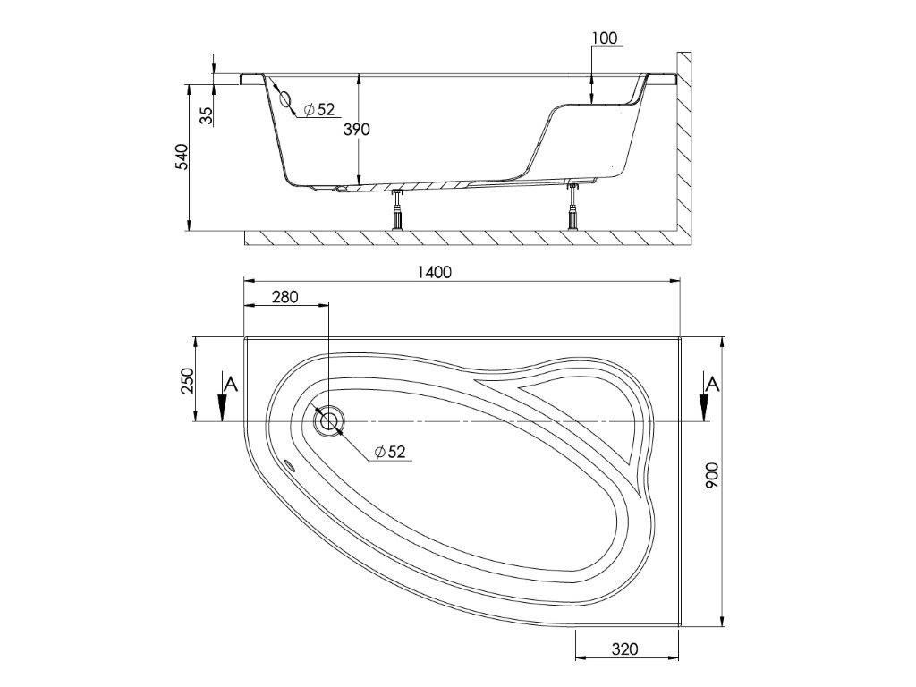 | Tvar vany: | asymetrické |