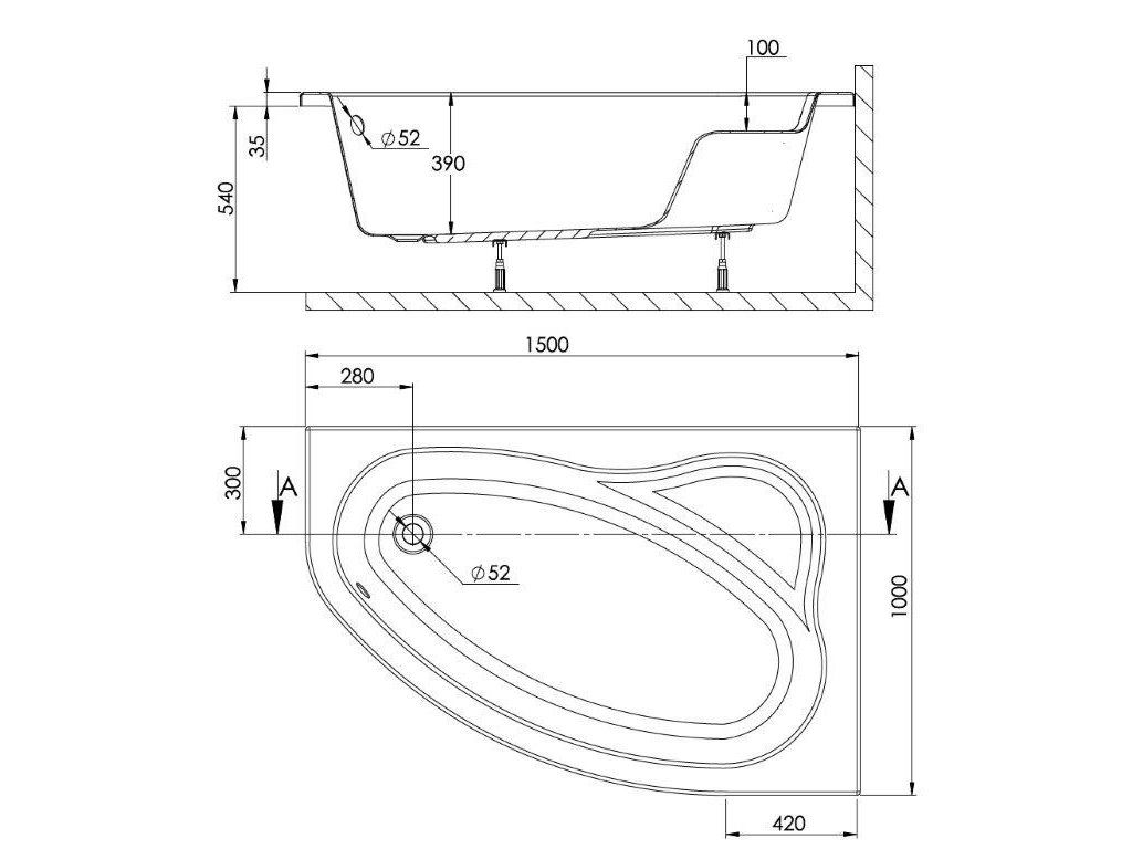 Scansani Simpla 150x100 akrylátová vana Délka vany: 150cm, Orientace: Levá, SCS100L_LEVA_150_CM
