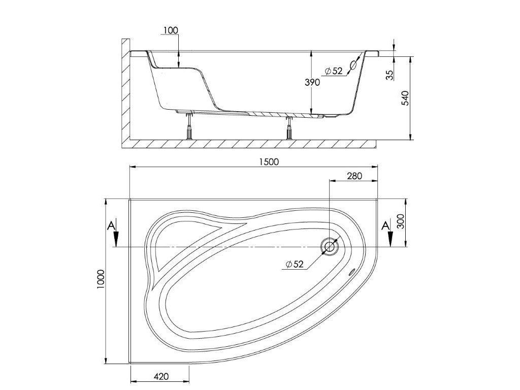 Scansani Simpla 150x100 akrylátová vana Délka vany: 150cm, Orientace: Pravá, SCS100L_PRAVA_150_CM