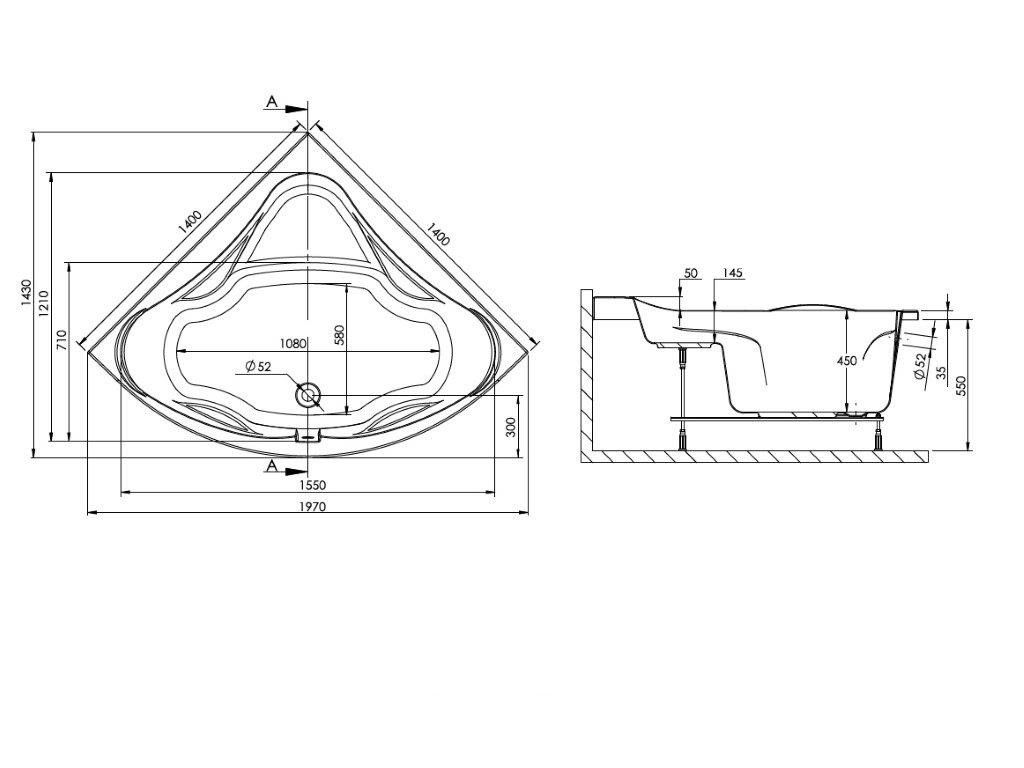 Scansani Wivea rohová akrylátová vana Délka vany: 145cm, WS145