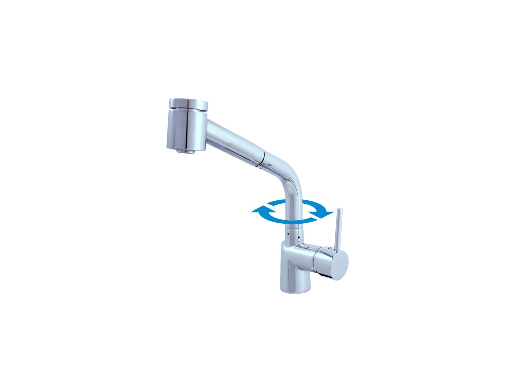 Vodovodní baterie dřezová stojánková s otočným ústím a vytahovací sprchou.