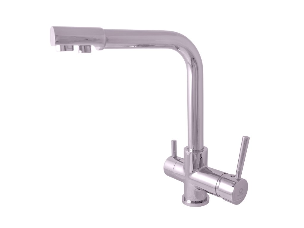 Vodovodní baterie dřezová stojánková s otočným ústím - pro dvě vody - pitnou a užitkovou.