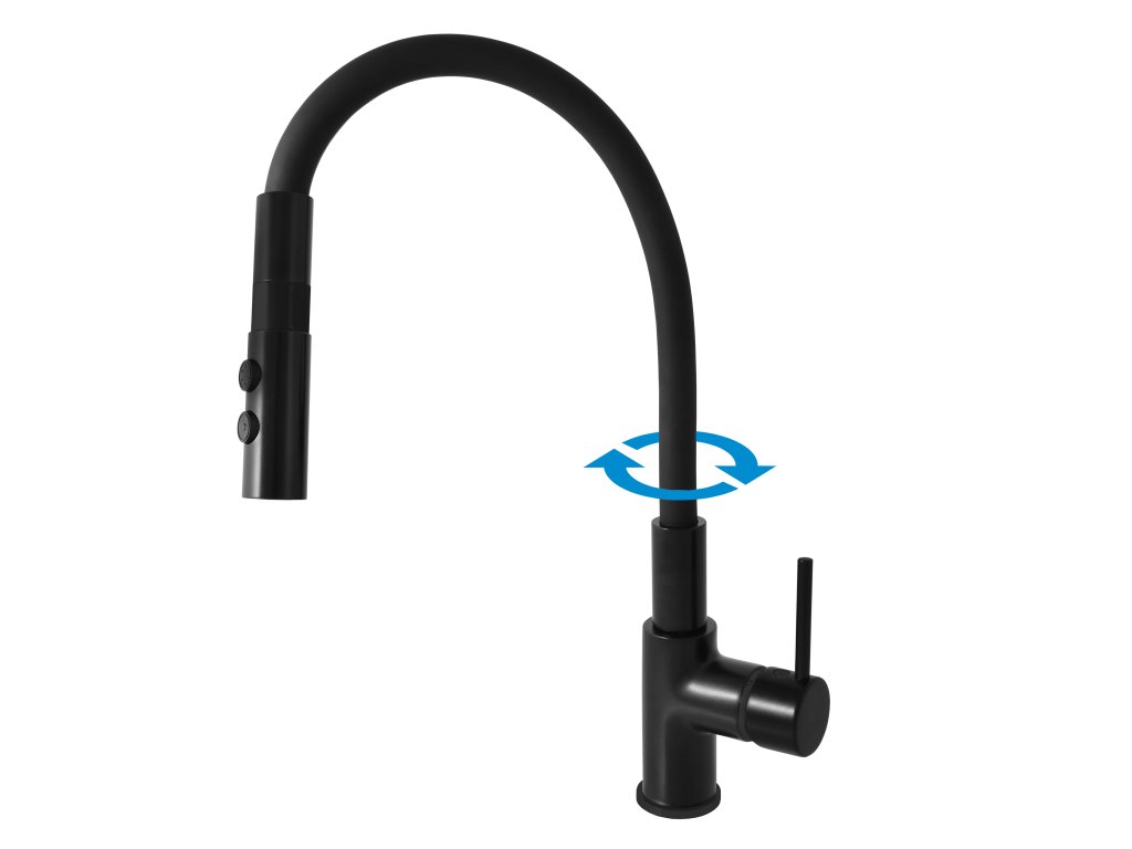 Vodovodní baterie dřezová stojánková s flexibilním otočným ramínkem se sprchou.
