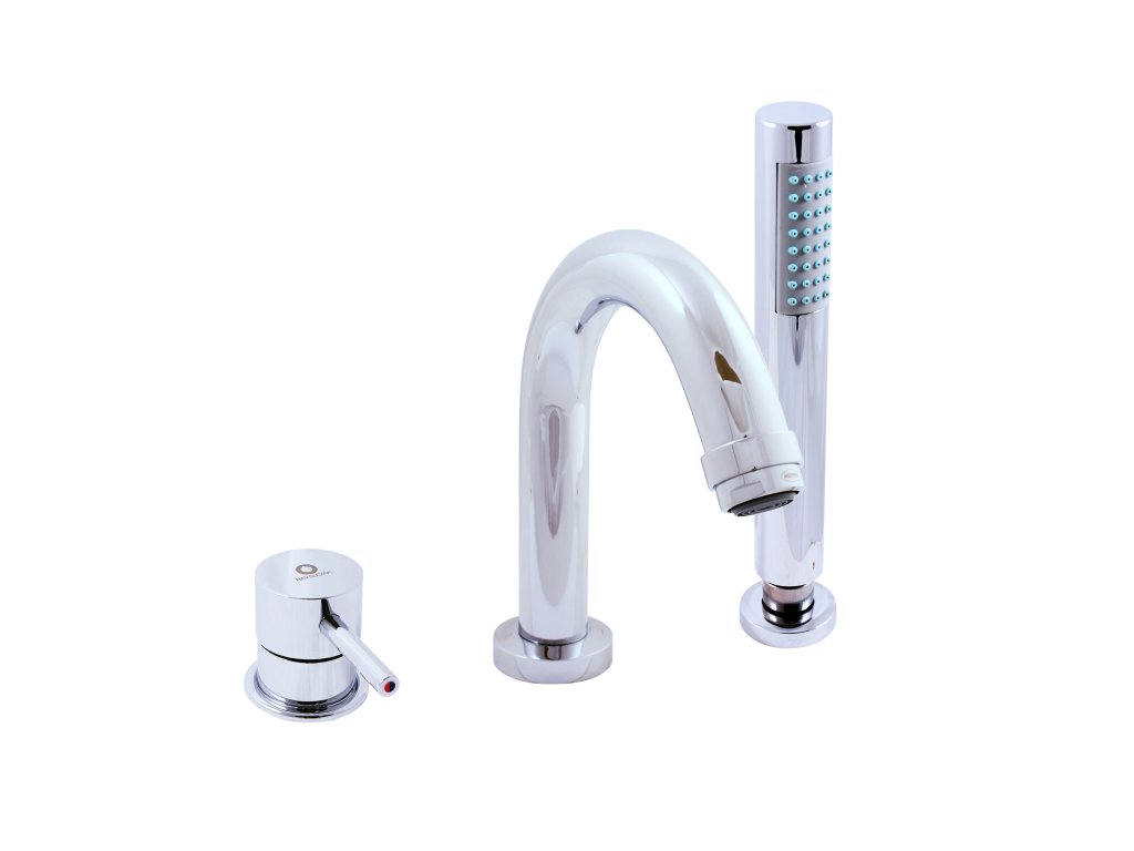 Vodovodní baterie vanová stojánková tříotvorová s přepínačem v mixu, samonavíjecí 2m hadicí a sprchou.
