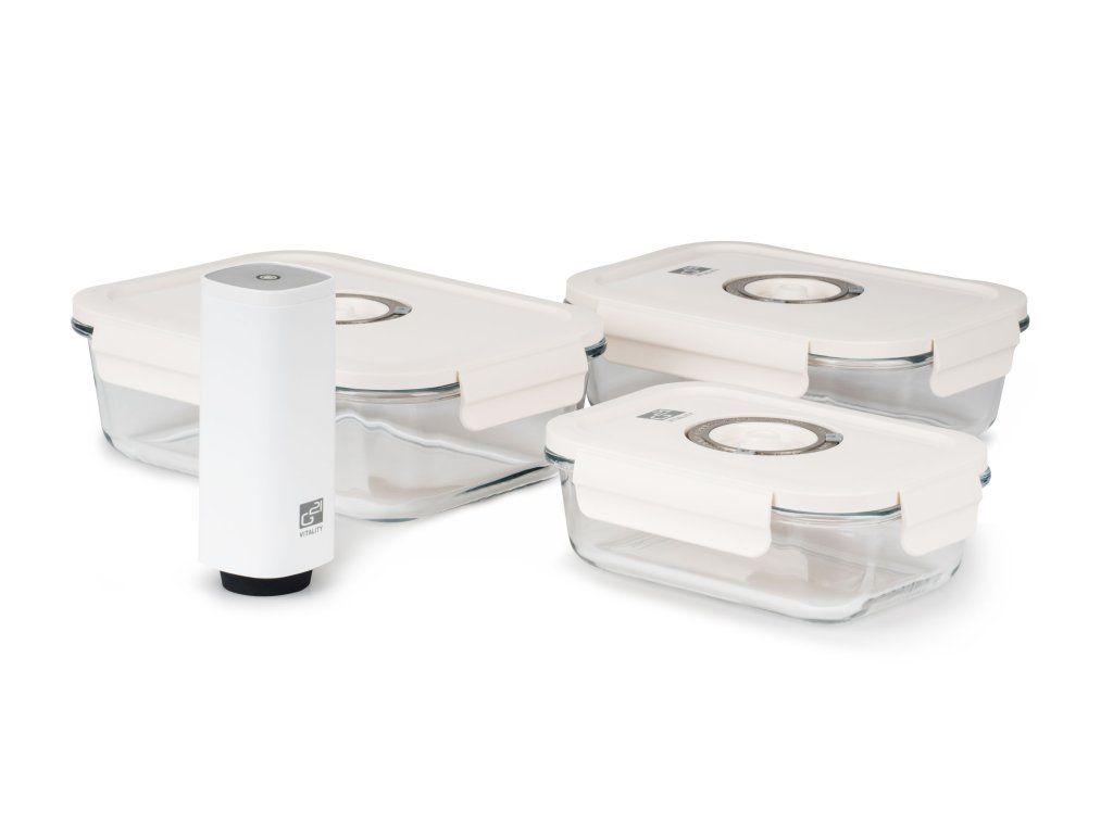 - Kompletní set – vakuovací pumpa a dózy s objemem 630, 1 040 a 1 480 ml