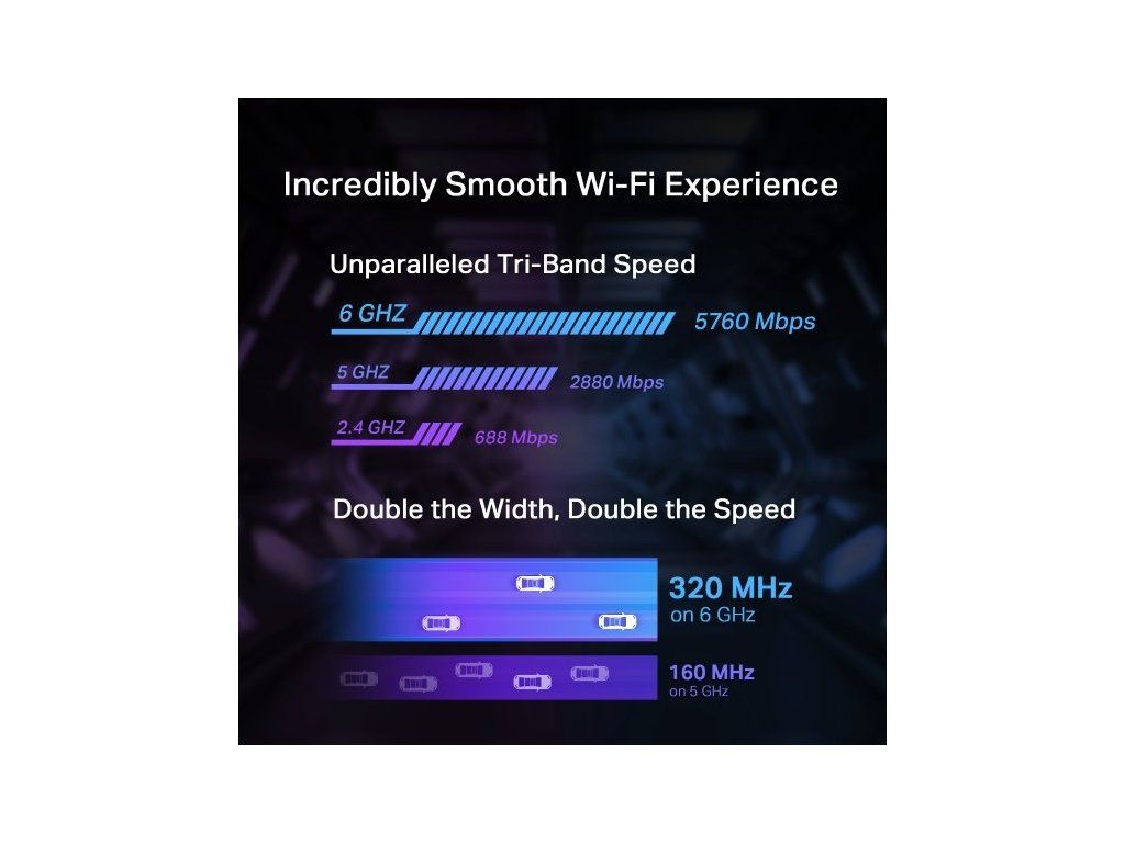 - 6 GHz: 11be až 5760 Mbps (dynamic), 11ax: Up t0 2402Mbps (dynamic)