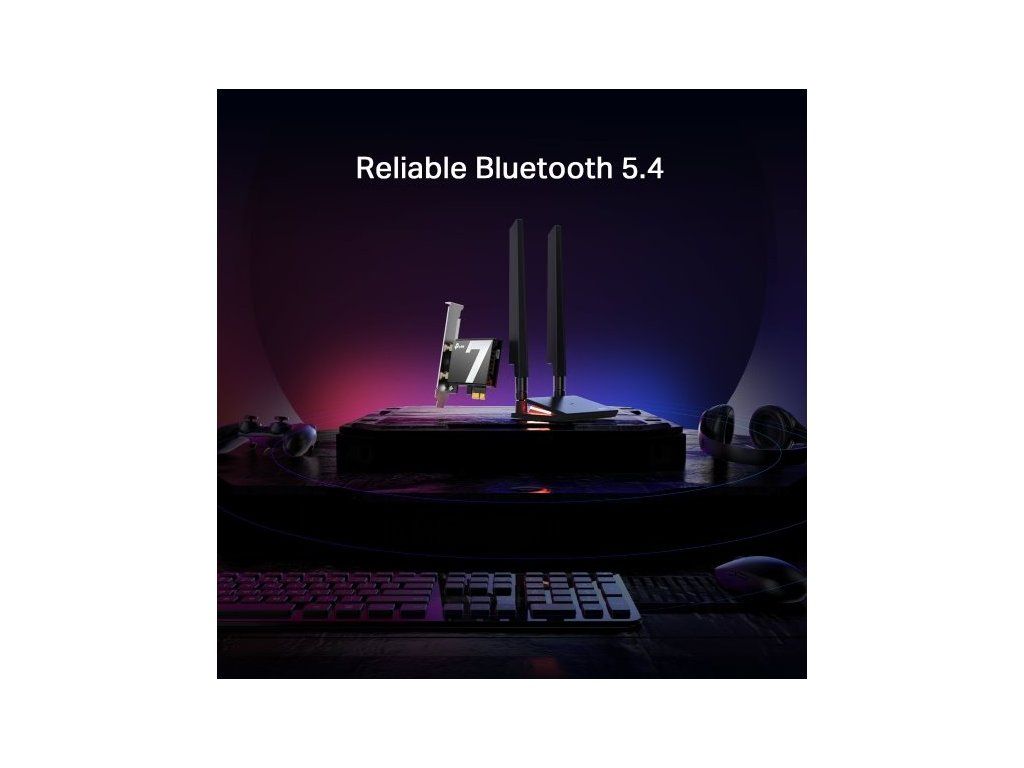Užijte si nerušené streamování a plynulý chod aplikací. Díky zrychlené propustnosti, nižší latenci a silnější ochraně proti rušení si vychutnáte špičkový výkon standardu Wi-Fi 7. Technologie Bluetooth 5.4 zajistí širší pokrytí a vyšší rychlost všech vašich připojených zařízení, od sluchátek až po herní ovladače.