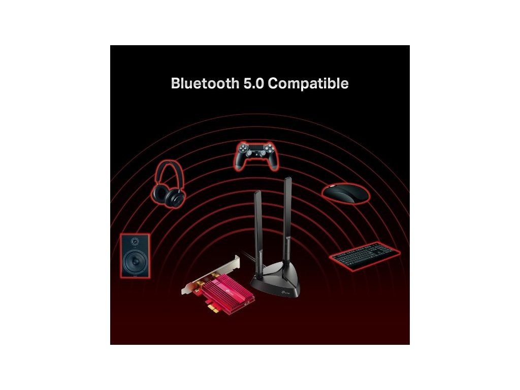 Archer TX3000E je kompatibilní s nejnovější technologií Bluetooth 5.0 a dosahuje 2× vyšší rychlosti a 4× širšího pokrytí než Bluetooth 4.2. Připojte tolik zařízení, kolik chcete, včetně herních ovladačů, sluchátek a klávesnic, abyste si užili hladší zážitek než kdykoli předtím.