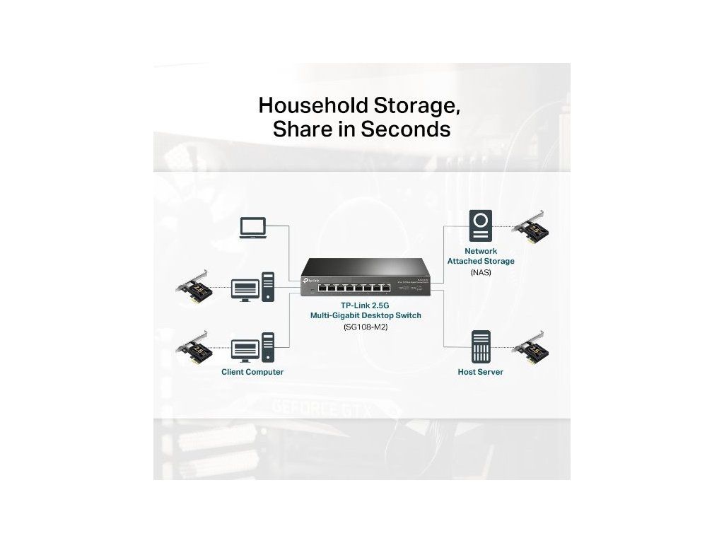 - Technologie 2,5G Base-T pro zpětnou kompatibilitu s Fast Ethernetem a Gigabit Ethernetem