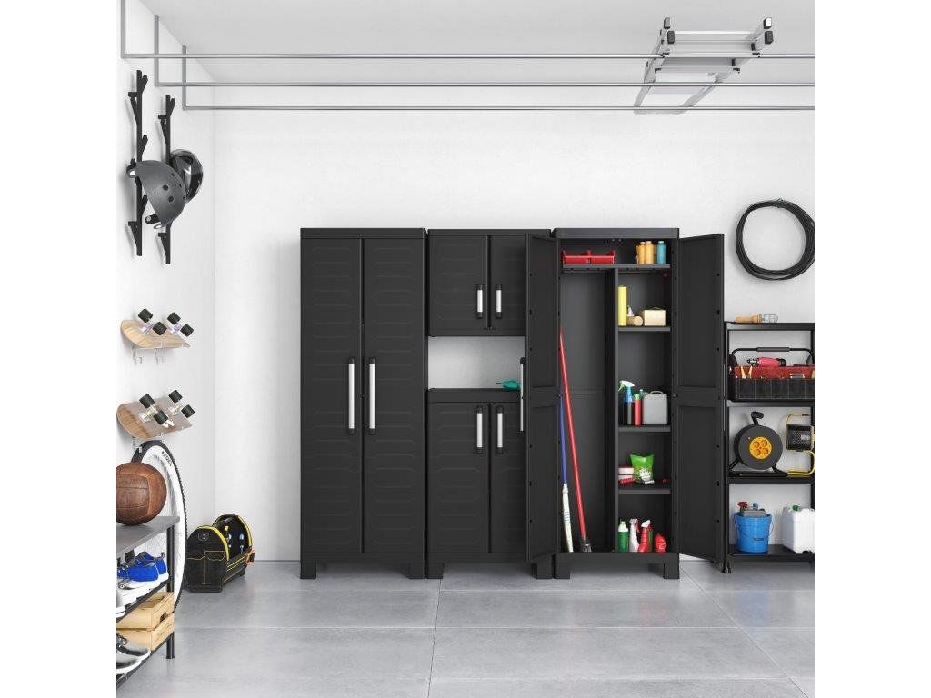 Skříň Keter Detroit Low obsahuje celkem 2 přídavné police, které maximálně zpřehlední organizaci vnitřního prostoru. Každá z nich poskytuje maximální nosnost až 15 kg, což přijde vhod pro výrazně těžší předměty všeho druhu. V útrobách skříně tak pohodlně uchováte i rozličné dílenské a zahradní nářadí, které by se jinam nevešlo. Velkou výhodou produktové řady Keter Detroit je také jednotný spojovací systém, díky kterému vytvoříte kompletní skříňovou stěnu pro všestranné využití dle vašich potřeb a preferencí.