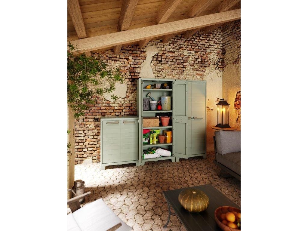 Skříň je vyrobená z 80 % z recyklovaného plastu. Díky možnosti uzamčení ochráníte veškeré uschované cennosti před odcizením, tudíž bude vnitřní obsah v bezpečí za každé situace.