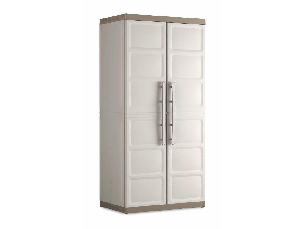 Skříň obsahuje celkem 3 přídavné police - každá s výraznou nosností až 25 kg, které přijdou vhod pro výrazně těžší předměty všeho druhu. Lze ji tedy využít pro skladování dílenského nářadí či zahradnických potřeb, kdy přijde vhod pro uložení náčiní s dlouhou násadou, které by se jinam nevešlo. Díky svému provedení v univerzální béžové barvě zapadne do každého prostoru bez ohledu na jeho konceptuální styl.