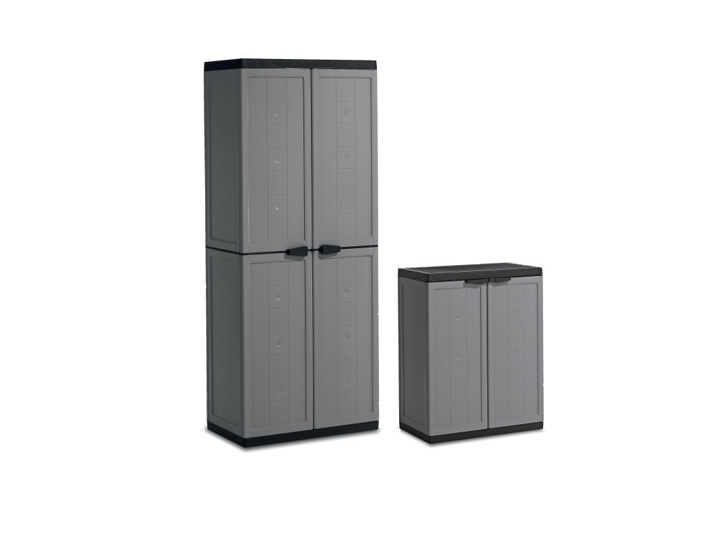 Skříň Keter Jolly Utility přináší promyšlenou kombinaci klasického policového systému a otevřeného prostoru pro větší nářadí nebo třeba smeták. Díky nízké hmotnosti 9,57 kg ji snadno přemístíte, přitom však zůstává stabilní a pevná. Výškově nastavitelné police umožní přizpůsobit si vnitřní uspořádání přesně podle potřeby. Uzamykatelný systém zvyšuje bezpečnost uložených věcí, a skříň tak skvěle poslouží nejen v domácím provozu, ale i na chalupě nebo v technickém zázemí.