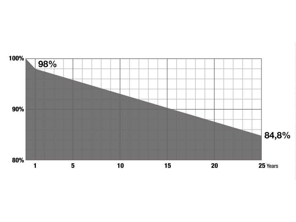 Ručíme i za účinnost panelu, a to celých 25 let na účinnost 84,8 %.