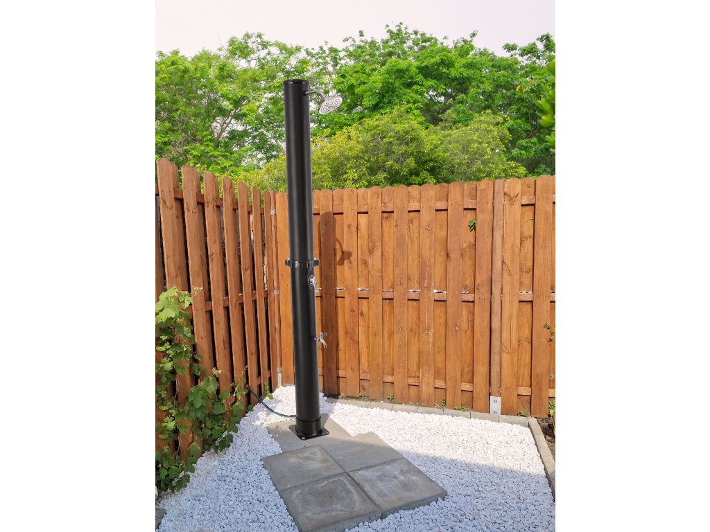 Tělo sprchy v elegantní černé barvě slouží zároveň jako solární kolektor - absorbuje sluneční paprsky a ohřívá vodu bez potřeby elektřiny či plynu. Když si dopřejete sprchu před plaváním, ochráníte vodu v bazénu před zbytečným znečištěním. Tím si výrazně usnadníte jeho údržbu.