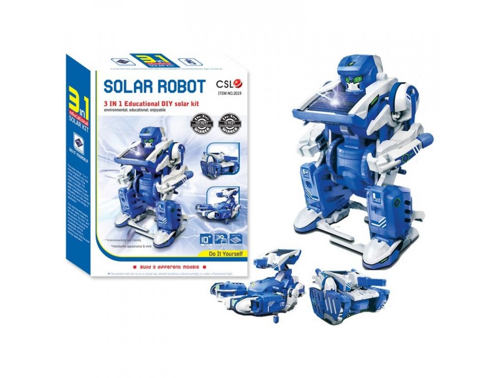 Solárním článkem poháněná stavebnice třech robotů uspokojí děti i dospělé.