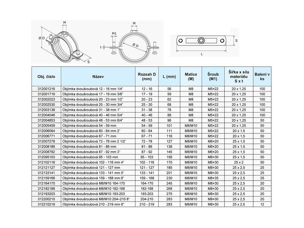 - objímky do rozměru 48-53 včetně, jsou k dostání i s maticí M8/M10