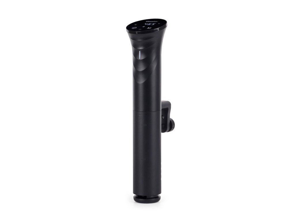 Ponorný pomalý vařič G21 Maestro je skutečným mistrem v sous-vide vaření ve vakuu. Je připraven pro každodenní bezpečné použití a vyladěný do nejmenších detailů. Elegantní tělo se skládá ze dvou částí – ponorná část s vnitřní varnou spirálou a vrchní část s elektronikou a kulatým dotykovým displejem. Pro bezpečné zavěšení sous-vide vařiče G21 Maestro na okraj varné nádoby jsme ponorný vařič vybavili háčkem s upínacím šroubem.