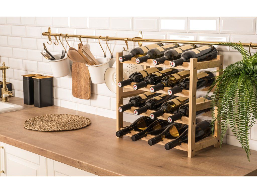 Pořiďte si designově čistý a zároveň praktický stojan na 16 lahví vína. Precizně zpracované bambusové dřevo mu dává příjemný přírodní vzhled, takže stylově doplní každý interiér. Hlavní ale je, že jsou v něm láhve bezpečně a správně uložené, nedochází k vysychání korku a snadno se v nich orientujete.