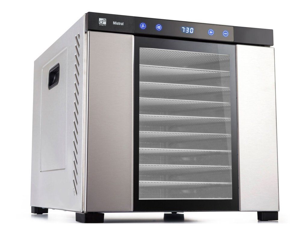 Řídící jednotka sušičky G21 Mistral má dokonale řešenou elektroniku, ovládání je intuitivní a snadné. Časovač hlídá dobu přípravy a po skončení sušení sušičku sám vypne. Regulátor teploty vám dává absolutní kontrolu nad sušícím procesem. Usušte si to, co chcete, přesně tak, jak to chcete.