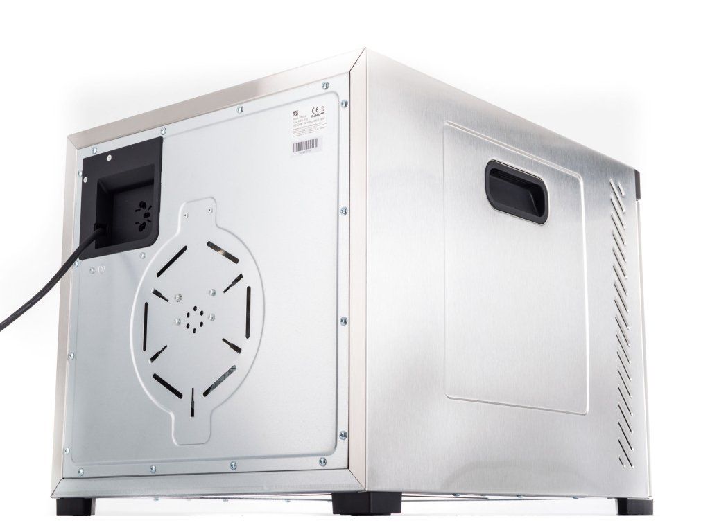 Sušička potravin G21 Mistral má na rozdíl od běžných sušiček také nerezová dvířka, která zajišťují nižší spotřebu energie, dokonalou cirkulaci vzduchu, efektivnější sušení a zkracují dobu sušení potravin. Abyste dvířka v průběhu sušení nemuseli otevírat a do sušičky se tak nedostal chladný vzduch, vybavili jsme je okénkem. Snadno a rychle tak zjistíte stav sušeného ovoce, zeleniny, bylinek, hub nebo masa. Díky dvířkům můžete také vyjmout libovolný počet plat a sušit na menším počtu bez obav, že narušíte kvalitu sušení.