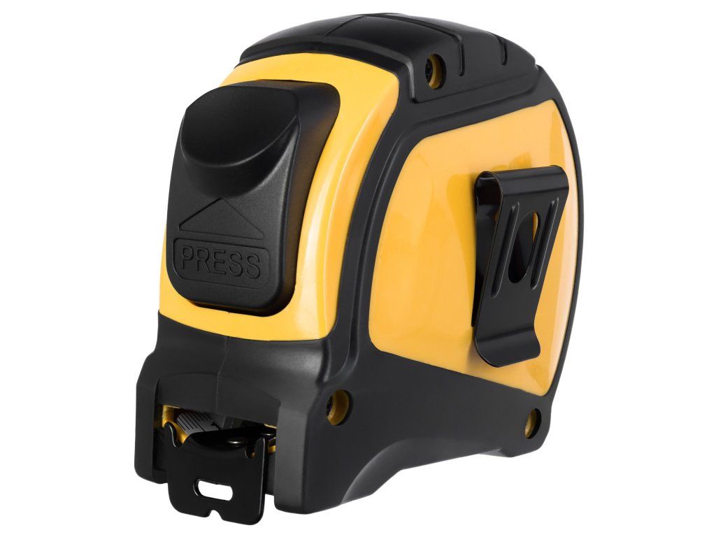 Mějte metr neustále u sebe. Pomocí spony si ho připnete na opasek nebo si jeho řemínek zavěsíte na ruku. Metr se vyrábí z kartáčované oceli. Jeho pouzdro z vysoce odolného ABS plastu je pogumované a chrání měřící nástroj před poškozením.