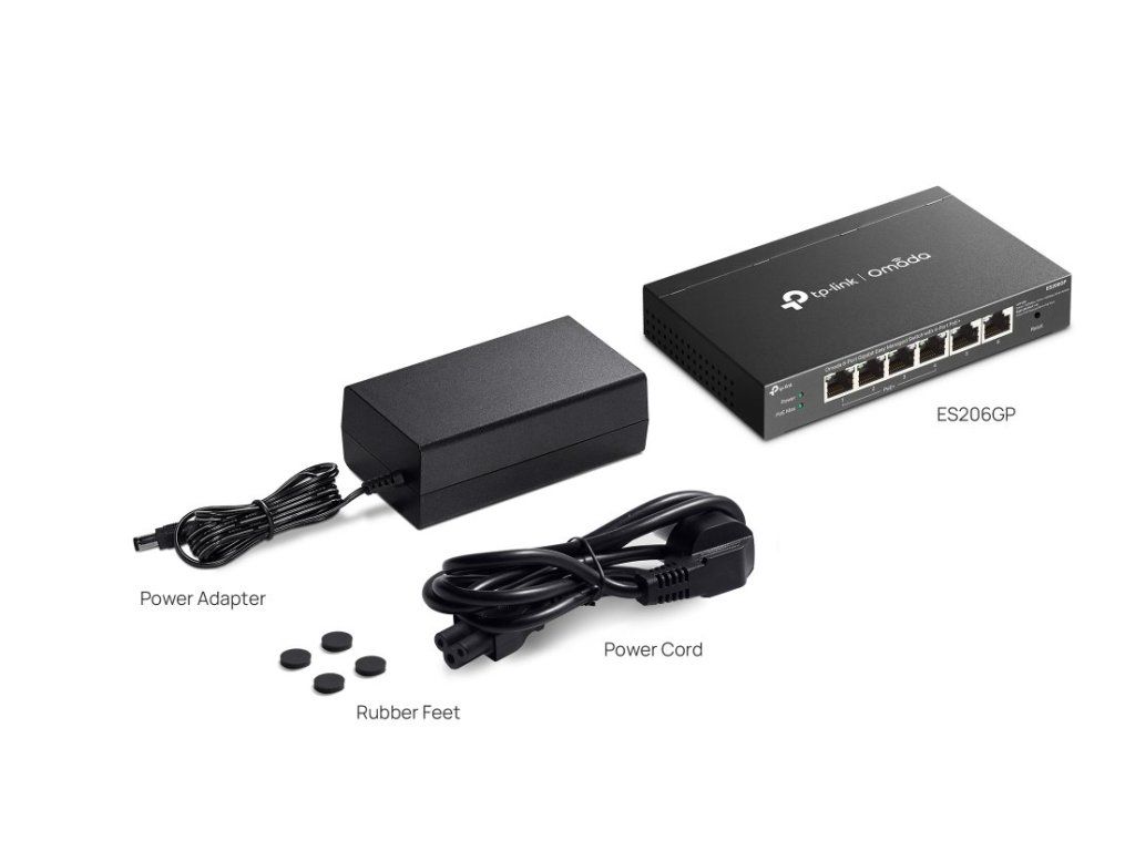 Switch TP-Link ES206GP využijete v kanceláři, pro maloobchod, univerzitní areál či pohostinství. Zajistí vám vysokorychlostní a spolehlivé spojení s dalšími switchi a zařízeními. Je navíc kompatibilní s IP kamerami, přístupovými body a zařízeními bez PoE (tiskárny a počítače). Najdete na něm celkem 6 gigabitových portů RJ45. 4 z nich podporují PoE+ a standard 802.3at/af. Jejich celkový rozpočet je 65 W, na každý port pak připadá až 30 W.