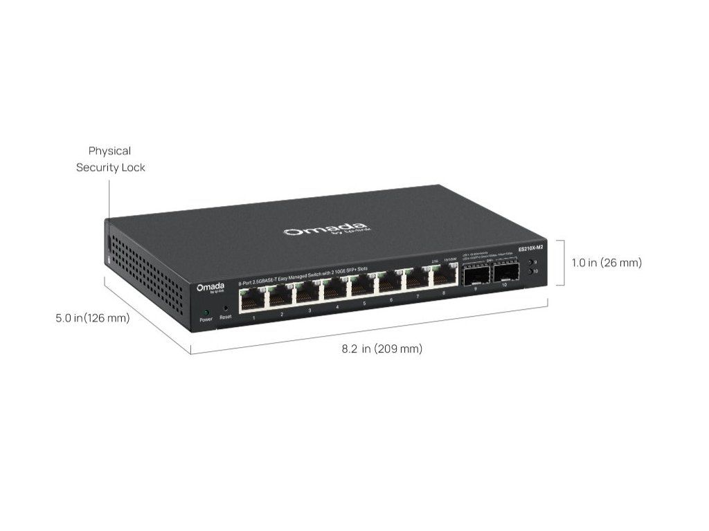 TP-Link ES210X-M2 je výkonný 2,5G multi-gigabitový switch s 10G SFP+ uplinkem, navržený pro moderní kanceláře, studia i domácí sítě s vysokými nároky na přenos dat. Díky 8× 2,5Gb/s portům a kapacitě přepínání 80 Gb/s zajistí maximální propustnost bez kompromisů.
