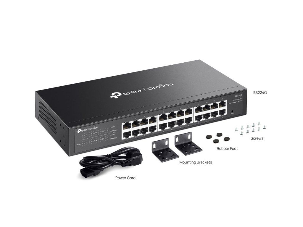 Hledáte efektivní řešení pro dohledové a podnikové sítě? Switch TP-Link ES224G nabízí 24 gigabitových portů, podporuje cloudovou správu přes Omada SDN a je ideální pro snadnou a rychlou instalaci.