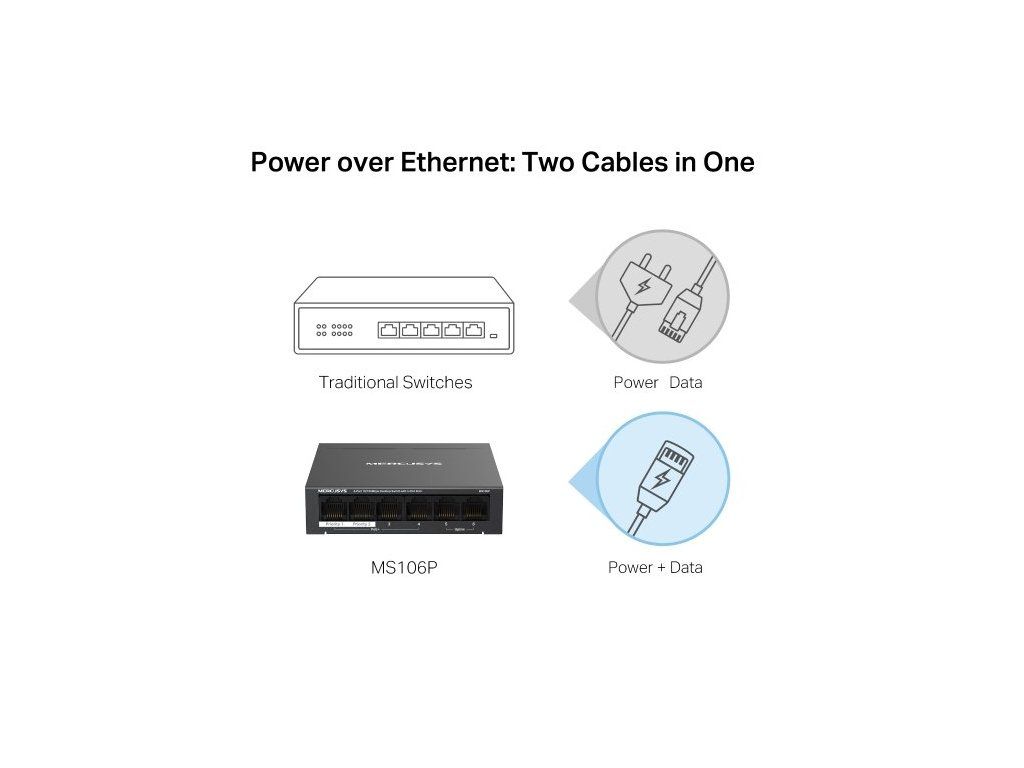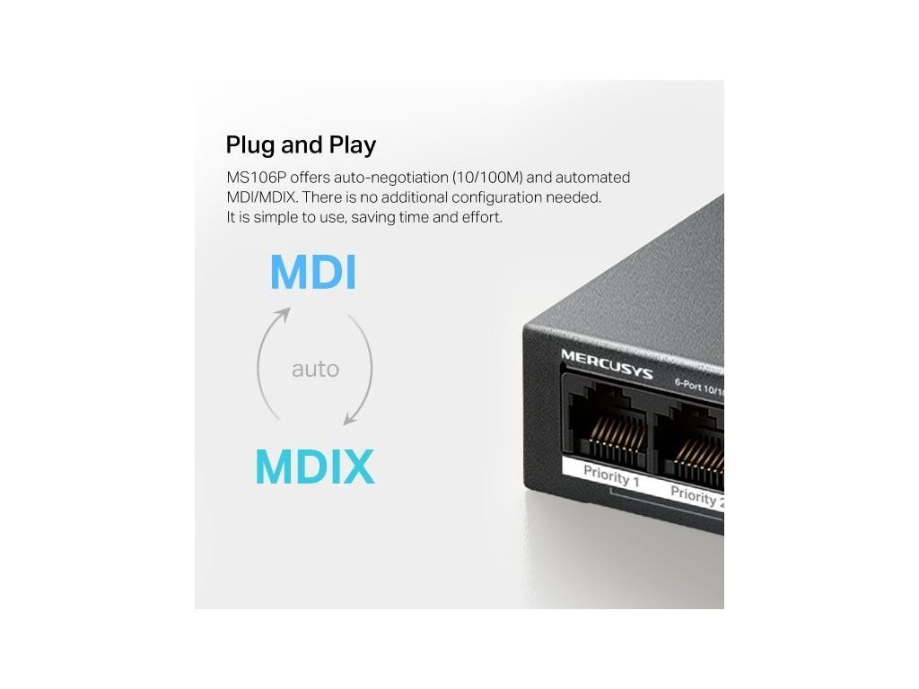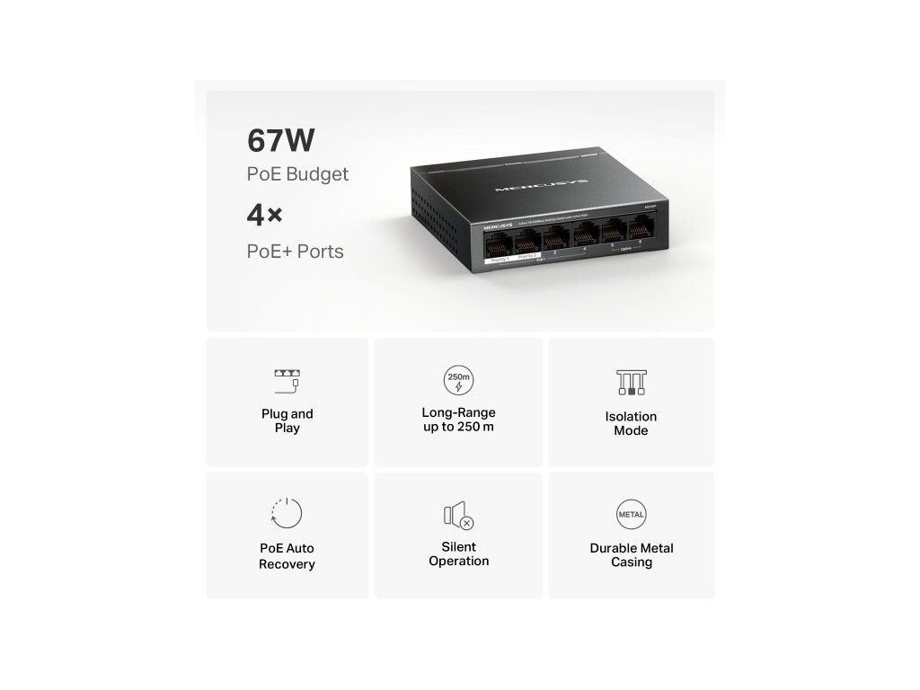 Switch TP-Link Mercusys MS106P 2x LAN, 4x LAN s PoE, 67W, 52453537