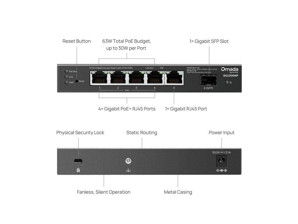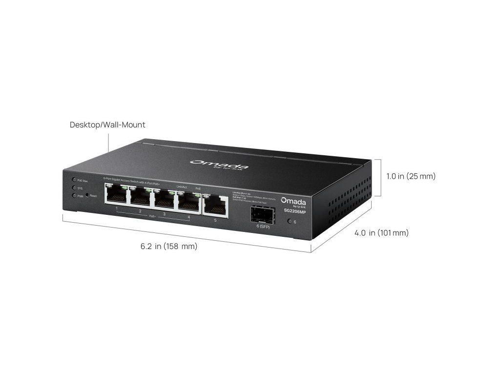 Začněte budovat moderní a výkonnou síť s PoE+ switchem TP-Link SG2206MP, který nabízí 5 gigabitových portů, z toho 4 s PoE+ napájením a jeden SFP slot pro optické připojení. Díky centralizované správě přes platformu Omada SDN jde o ideální volbu pro malé firmy, kanceláře i technicky vyspělé domácnosti.