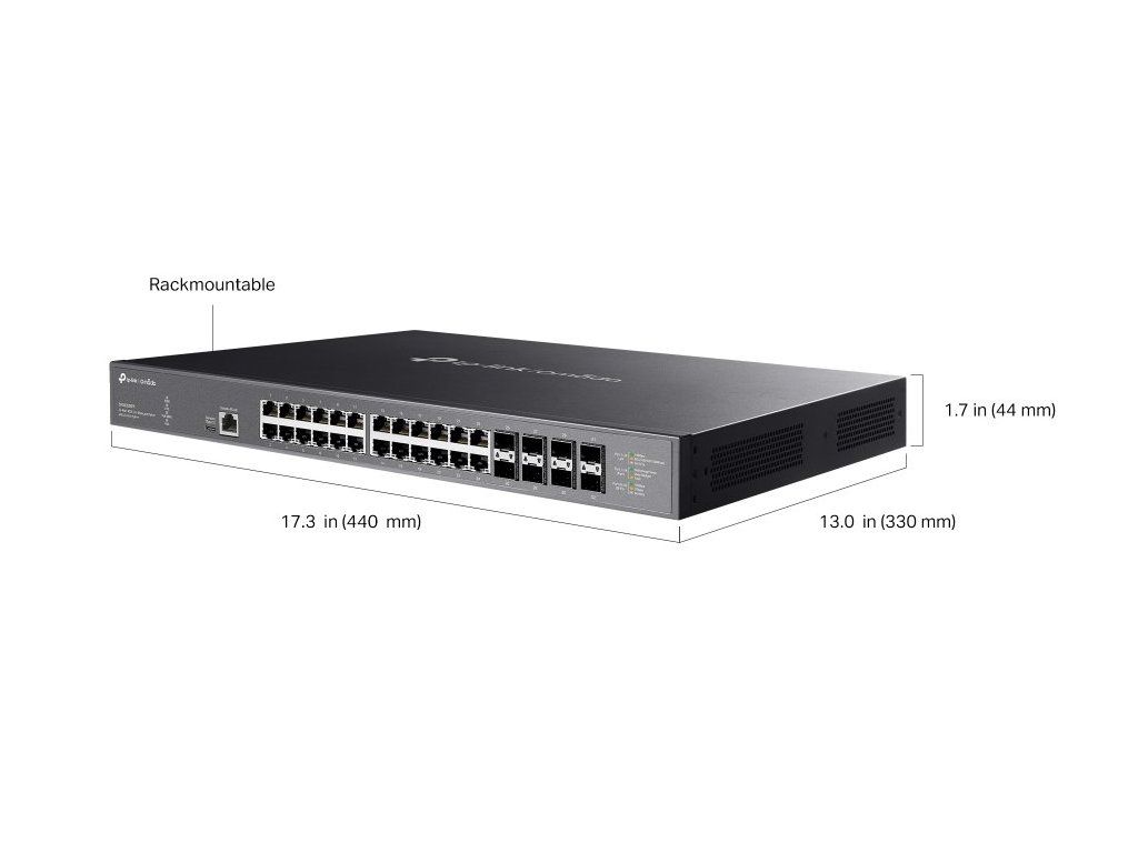 S řízeným switchem SX3832MPP od TP-Link získáte bleskurychlé 10G připojení, které využijete hlavně ve firmách a provozovnách. Tento plně řízený switch vám poskytne 24 portů 1/2,5/5/10 Gb/s RJ45 PoE++ a 8 portů 1/10G SFP+. Těšit se můžete na přepínací kapacitu 640 Gbit/s. Odolné kovové pouzdro umožňuje montáž do racku.