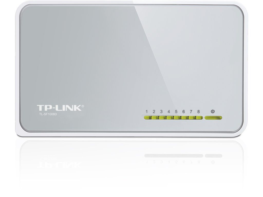 Switch TP-LINK TL-SF1008D je malý, kvalitní a rychlý 8portový přepínač. Všech osm portů podporuje funkci Auto MDI/MDIX a vy se tak nemusíte starat o to, který kabel máte připojit. Porty automaticky rozpoznají rychlost přenosu 10 Mbit nebo 100 Mbit připojených zařízení, signalizace a funkčnost je zobrazena pomocí LED diod a také podporuje standardy IEEE802.3x. Switch je napájen pomocí externího adaptéru a je vhodný pro malé SoHo sítě s rychlostí 100 Mbps.Parametry: